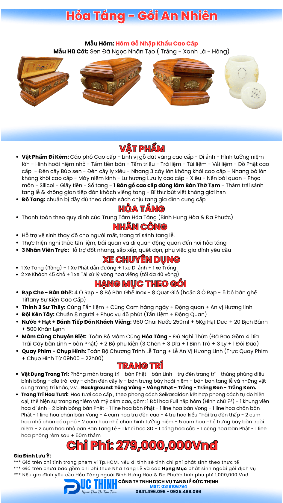 - Gói Hỏa Táng Trọn Gói Cao Cấp chi phí là 279,000,000Vnđ